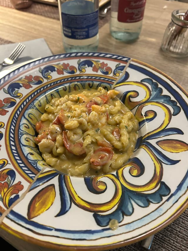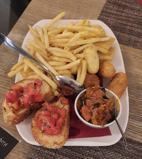 10/10Overall, really good experience. The ambience is quite nice and the prices are reasonable for the portion sizes. We booked through the app the fork and went at an off time (21:30) so we got 50% off our bill which made it even sweeter. Il we ordered the Sicilian starter and it was quite nice, lots of fried food. I then ordered the swordfish which was a HUGE portion and had a nice little salad on the side. Lastly, I ordered the almond parfait for dessert which was delicious. As well, the wine glass portions are generous so you definitely only need one (the prosecco was €5). The server was super sweet and nice though we spoke mostly in Italian so not sure about English ordering but the menu is offered in English as well. There is no green pass check but the restaurant is airy and spacious and open to out doors so it felt safe. Would probably not go again without a discount but super enjoyed it for the price and portion sizes!