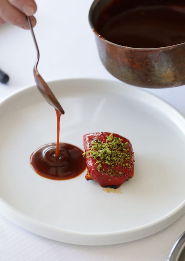 High end seafood restaurants often leave me left than satisfied as I’m a timid fishy fish eater but the nine course “surprise” tasting menu was really enjoyable. And the wine pairings were right on. I love the fact that nearly all of the wines were from the region. A small suggestion: when you book request a table on the terrace. The restaurant space is lovely but I think the open air by the sea would have enhanced the evening.