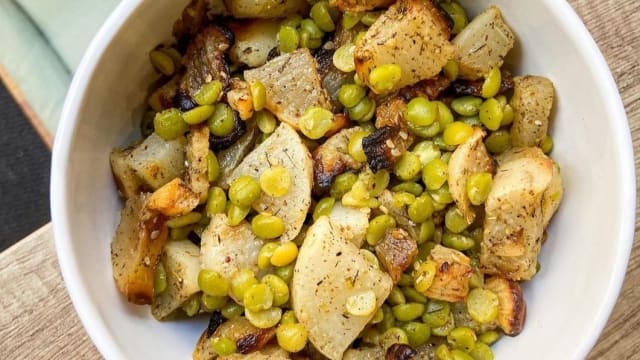Yes, Au bien manger has been identified as having local food on the menu.