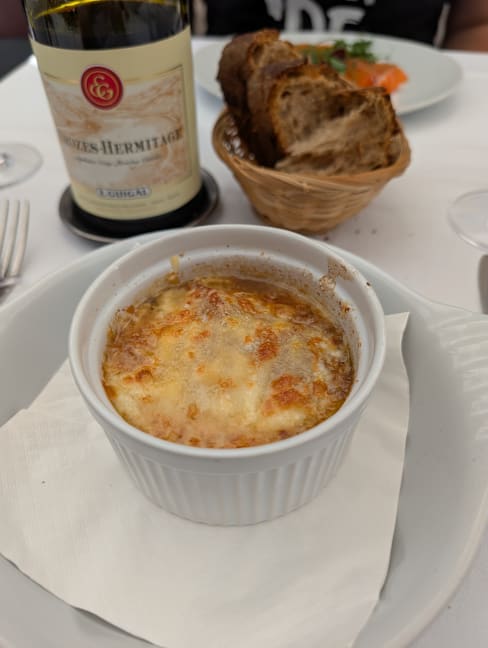 10/10Best French onion soup ever. Ribeye too. Going here twice during my visit. Nothing else needs to be said.