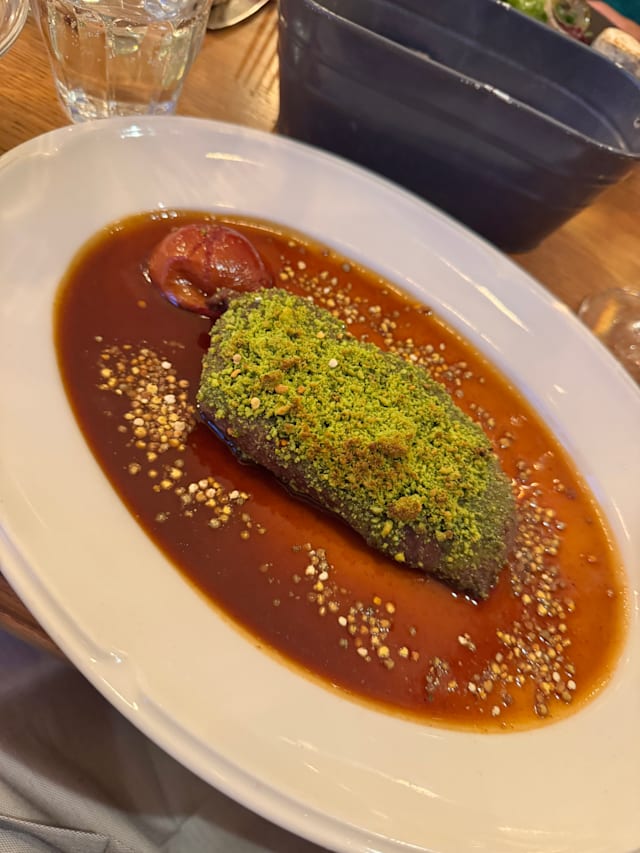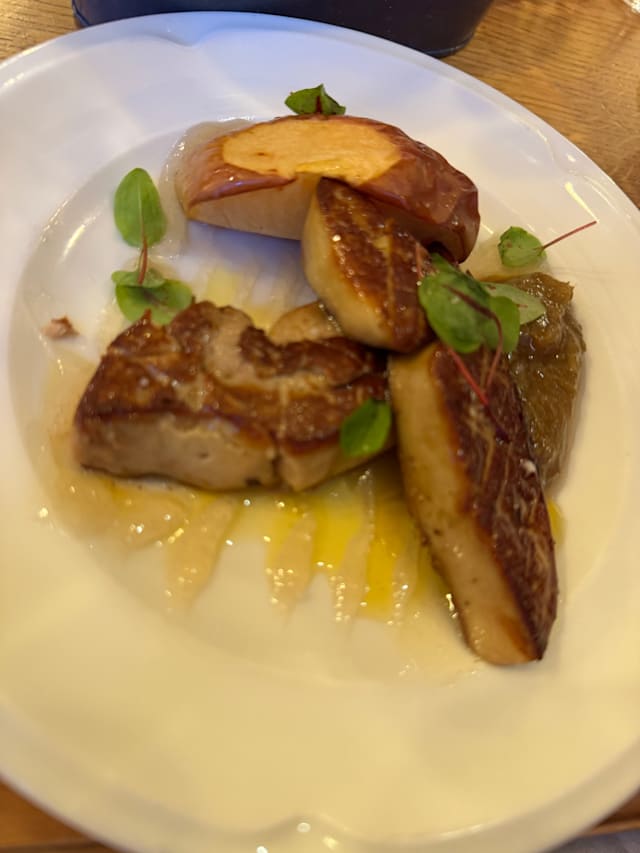 5.5/10Our main course was good but presentation was lacking. The restaurant was cold, the entrance door was open and although there were curtains to draw at the entrance they were left open as well. We were seated next to the hostess stand our table was against the stand. This was fine because the restaurant is quite small. Unfortunately, a family with 2 young boys (10-12 years of age) was seated next to us and were quite loud. We had reservations and they are a must. Two parties came in and left because they were unhappy with the table placement. It would seem large parties receive precedent over smaller parties of 4 or less. Totally understandable as a business owner. Again our table was fine but beginning placed between the hostess stand and a family wasn’t ideal for us to have a conversation or enjoy a nice dinner. We decided not to have dessert although we wanted to try the apple