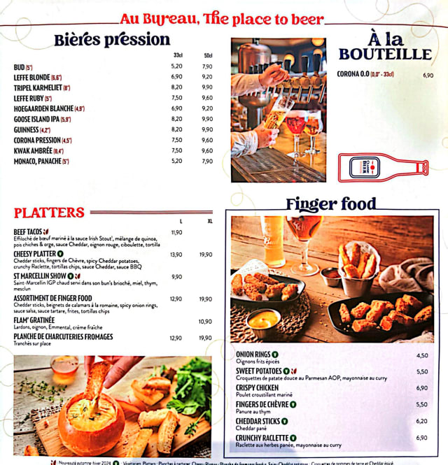 Rendez-vous dans notre pub authentique et unique… Véritable lieu de vie au décor anglo-saxon, Au Bureau rythme votre journée du matin jusqu’au soir : repas entre amis, apéro, sport, musique, danse… vous allez aimer passer du temps Au Bureau...