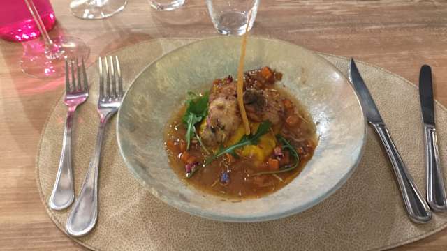 - Ris de veau snacké et écrasé de potimaron jus de thym