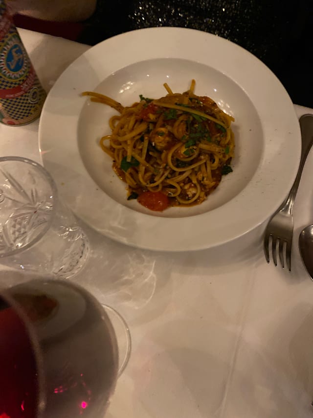 5.5/10Service was relatively cordial, but waiting time has been truly excessively long (over 30 minutes before ordering, dinner as a whole lasted more than 2 hours - and no excuses or courtesy gesture or remedy offered whatsoever). Food overall quite good (for my taste, too much and too many condiments). Also considered the foregoing, no doubt excessive price: about 150 euro for two starters, two mains, and two glasses of wine. Even with the discount offer (20%), the roughly 120 euro ultimately paid is still too much. Lastly, a bit of an odd ambiance (a Sicilian restaurant with, e.g., British-club frames and lights on the wall, American club sofas from the '50s or so, black underground decor around). Not sure I'd recommend.