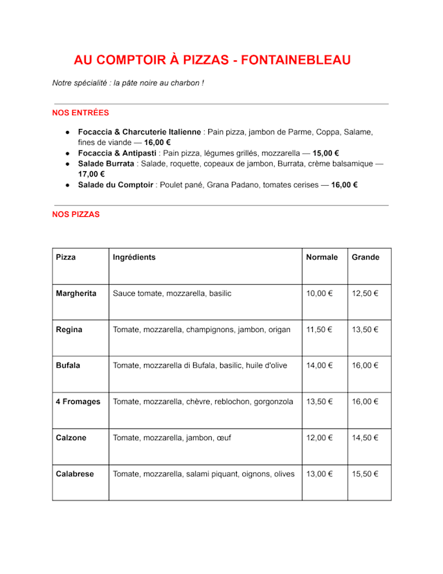 Au Comptoir à Pizza