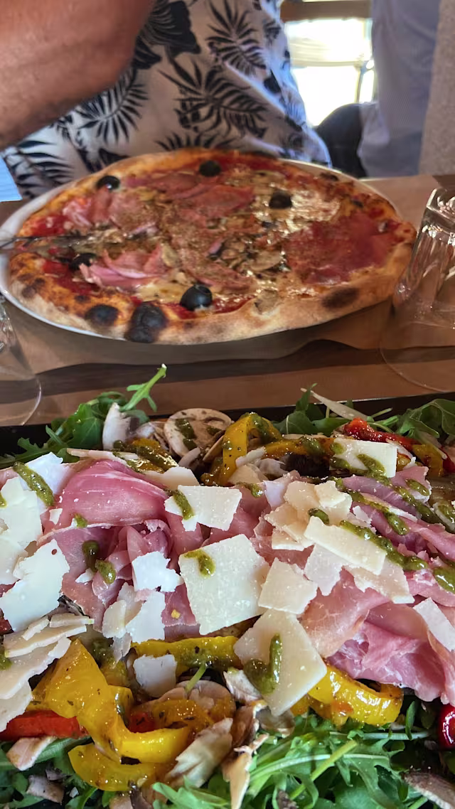 - Pain pizza, jambon de parme, coppa, salame,fines de viande
