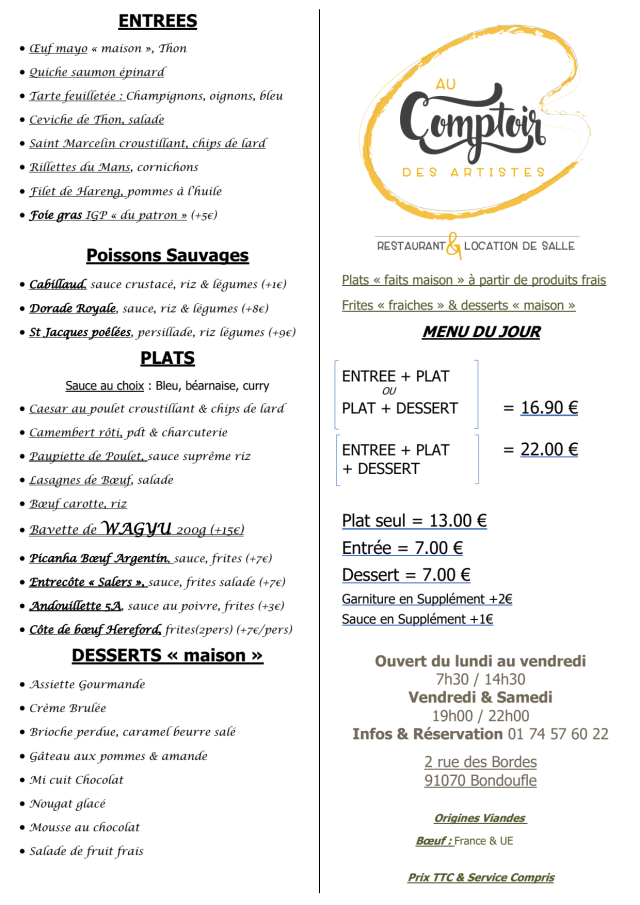 Au Comptoir des Artistes is rated 9/10.TheFork users have rated accordingly in the following categories: