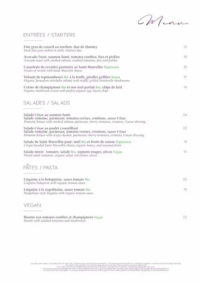 Great food, and our waiter was very nice. We do not speak french, but had a pleasent experience.