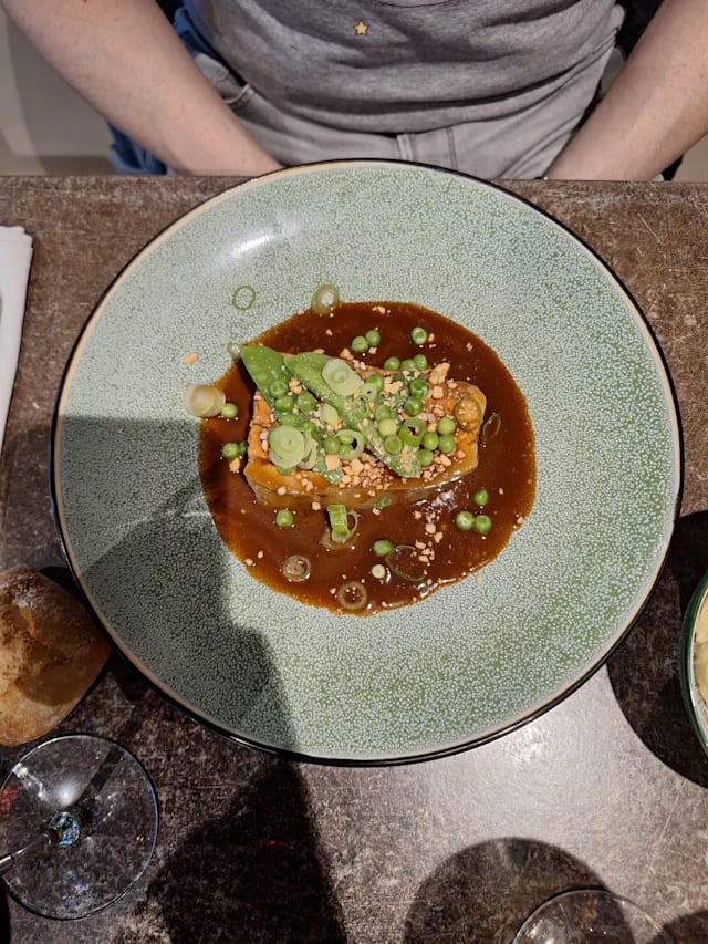 8.5/10Great find. A smaller restaurant in more residential neighborhood, we were greeted by happy and helpful people, were promptly seated. The decor is somewhat simple (don’t expect white tablecloths) and there’s maybe 12 tables? Outstanding escargo w/gnocci in a creamy sauce, outstanding braised beef w/truffled mashers. A raw fish ceviche - outstanding. Suitable champagne by the glass and a very nice wine list. Great crystal. Chantal Lescure Pommard 2019 €93, fantastic. They overcame the informality with wonderful food and friendly service. Recommend!