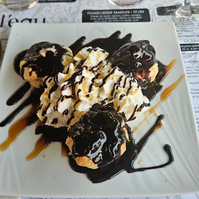 10/10This little restaurant was a great find. The pizza was delicious - we asked if the chef was Italian, it tasted like authentic Italian pizza. The salade du chevre with proscuitto was terrific too. And the vanilla and chocolat ice cream with chantilly creme was excellent. We will definitely return to Au Fils de L'eau.