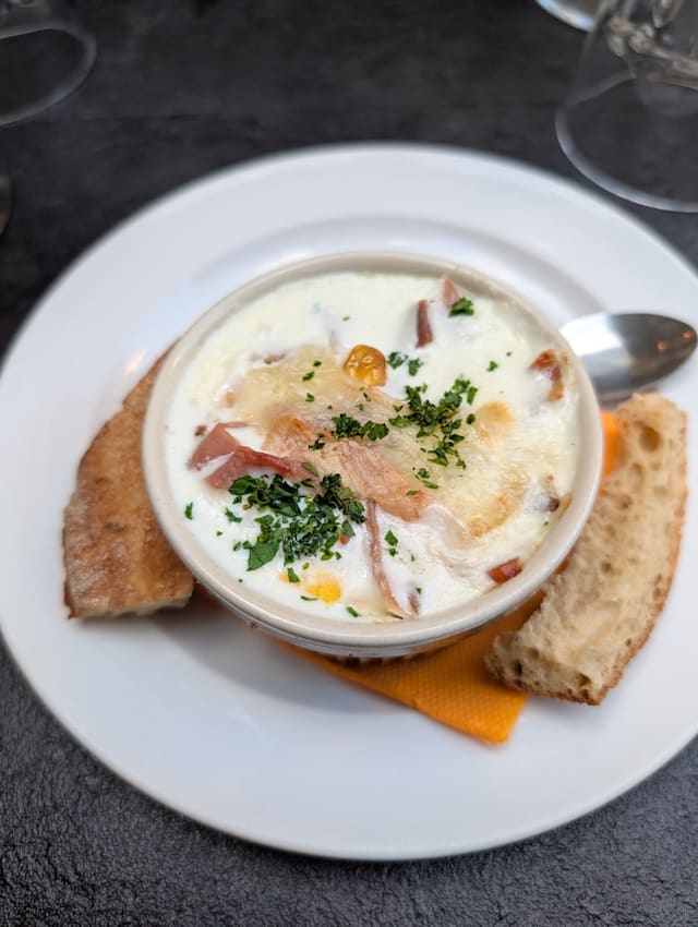 Merci pour votre avis effectivement les deux plats etaient réalisé à la crème sauf que le canard était réalisée avec du ratafia, et la sauce du saumon est une sauce crème au vin blanc et montée au beurre 🤔