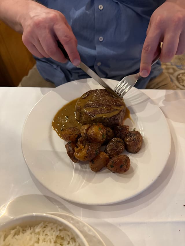 7/10The service was generally attentive. The price of the food for what you received was too high. Everything tasted a day old. The chateaubriand was tuff, the lamb was very chewy. The salad was excellent! The chocolate mouse also tasted old. The white Bordeaux was great also. I can not recommend your restaurant to friends .