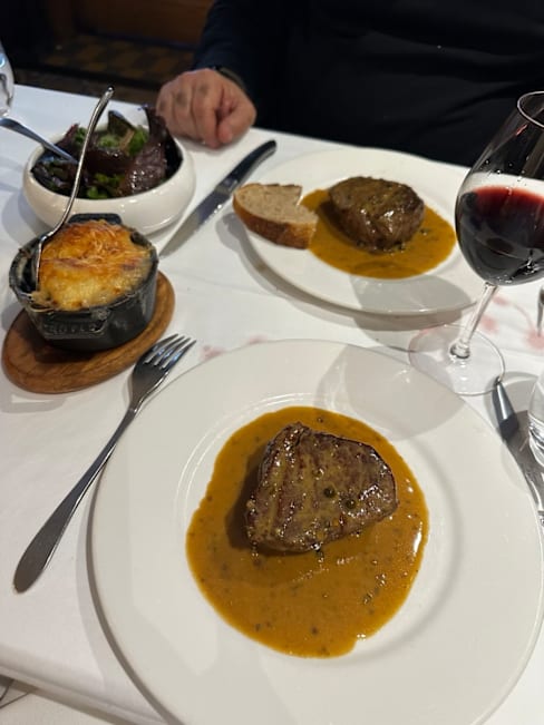 10/10I was celebrating my birthday in Paris with my niece and daughter. This lovely little hidden jewel was recommended to us , and I couldn’t have been more pleased to spend my last night in Paris having the most delicious meal . From the moment we entered, we felt welcome and catered to. The wine was excellent and the meal was divine. We had Chateaubrian and Dover Sole. Delicious! My evening was perfect.