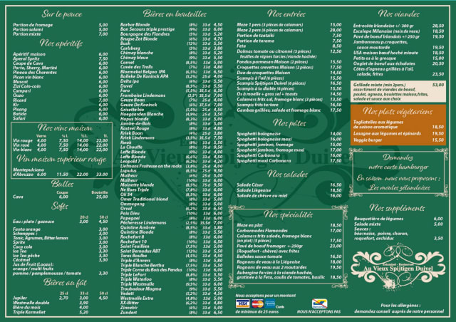 9.5/10Very good food in a typical inn atmosphere. Very friendly staff and host. Price are cheaper than average in Brussels Capital, but honestly, the quality of the food is here.