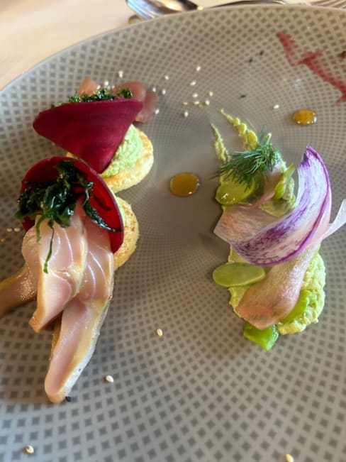 9.5/10Excellent experience. We took the entry-level set menu for lunch with the option of two glasses of wine matched to the dishes. Food was excellent, service a bit slow but it was a busy service. One wine was from their own production and after lunch we went to the cave and bought some to take home. Quality was excellent and price level appropriate to what we had. Will return and look forward to discovering the more elaborate menus and à la carte options.