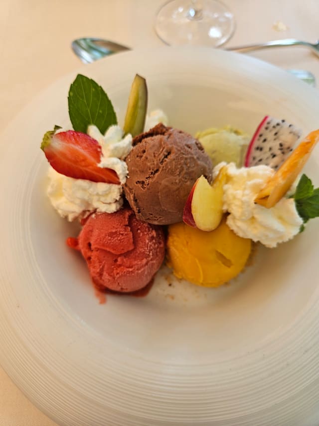 10/10We really enjoyed the location, the welcome, the Ambiente, the menu. We took the menu option with two glasses of wine and appreciated thèse also. The dessert was another Highlight. We will come back.