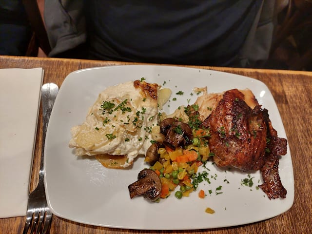 5.5/10Booked but didn't need to as the restaurant was quiet. Despite that, had to wait a while to be seated and a further 15 min to even get a menu. Starter (the escargot, which was tasty) arrived in decent time but waited for a long time to get my main (the entrecote) wish was a good portion and was ok. The staff seemed friendly enough though but I would have appreciated them being more attentive