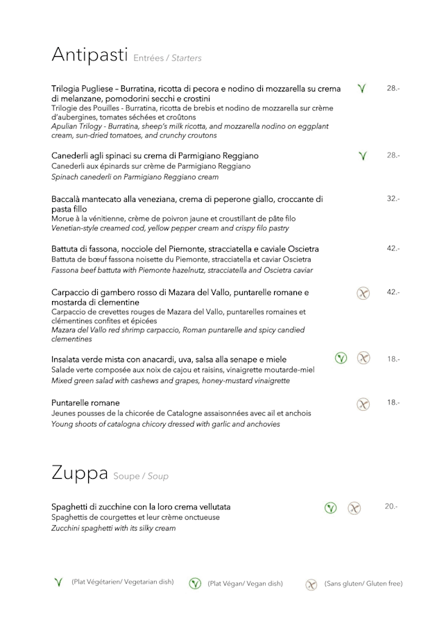 Great service and food in a very pleasant setting. Each server/waiter was attentive and helpful. The pastas were both perfectly prepared. The wine list while not extensive was well thought out. Plan to do there again when we are next in the Geneva area. On another note, I highly recommend the rooms above and the morning breakfast.