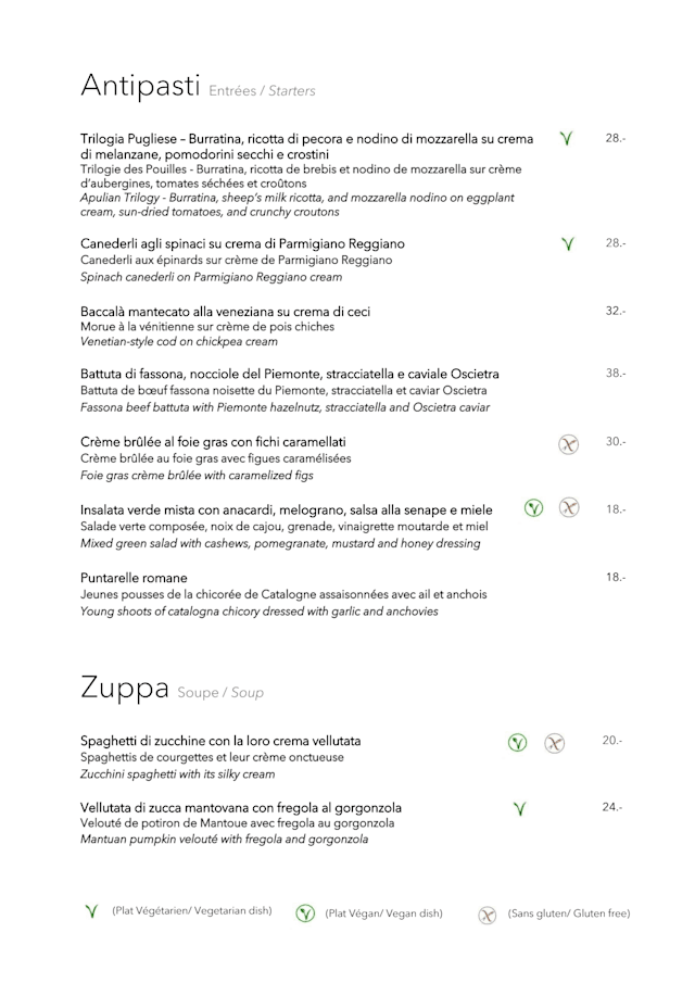9.5/10Great service and food in a very pleasant setting. Each server/waiter was attentive and helpful. The pastas were both perfectly prepared. The wine list while not extensive was well thought out. Plan to do there again when we are next in the Geneva area. On another note, I highly recommend the rooms above and the morning breakfast.
