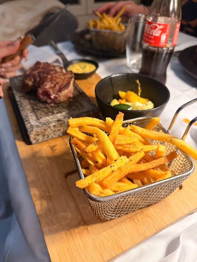 9/10Saint Valentine dinner, good festive menu and willingly changed my wife’s steak which was overcooked. The restaurant was totally booked and staff extremely busy, but still very polite and quite attentive. A pleasant evening.