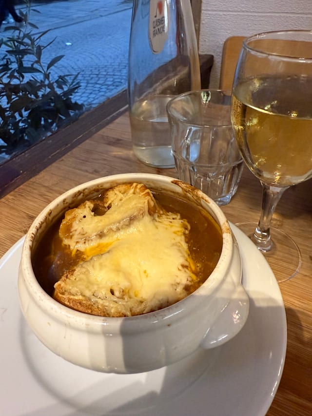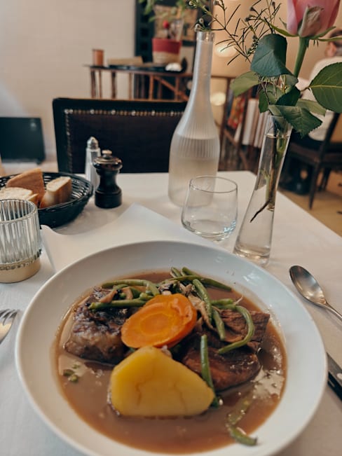 10/10We had onion soup and snails as starters. Then beef bourguignon accompanied by a Bordeaux. We finished with creme brûlée and panna cotta with red fruits. Every single dish was delicious. My girlfriend and I really enjoyed it, the atmosphere was super chill with soft jazz and candlelight topped by an amazing service. Price wise it’s incredible value, we payed around 40€ per person and was worth every penny. We highly recommend!