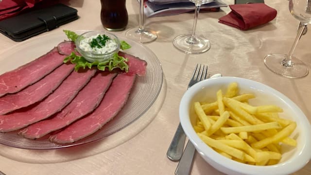 10/10excellent food.. had Malakoff and fish.. loved them and the recommended pinot. Great terrasse and ambiance and of course lovely service. Highly recommended.