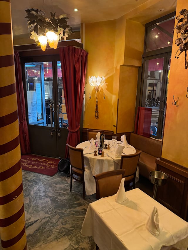 8/10We dined here as it was relatively close to our hotel on Blvd Richard Lenoir on a dismally wet night, and booked it via The Fork, which was offering a 50% discount on food. The interior is very traditional and. there's a plaque under the bar commemorating Victor Hugo, who was a regular patron back in the day. The food was very good, particularly veal escalopes done in different sauces, so we almost felt guilty about getting it at a substantial discount. The welcome we received was warm and the service was also friendly, if somewhat slow. Perhaps there was only one chef on duty in the unseen kitchen, which is served by up- and-down dumbwaiters behind the bar. We had a lovely bottle of Soave, the classic white wine of Veneto, and would certainly go back!