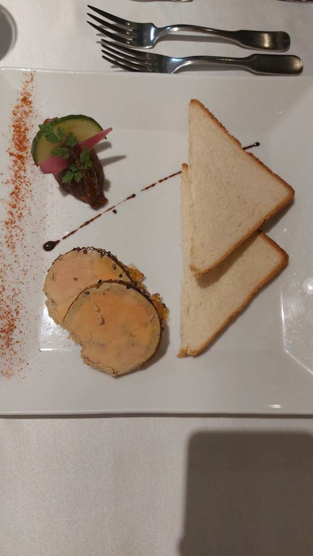 - Médaillon de foie gras cuit au Sauternes et compotée de figues sèches