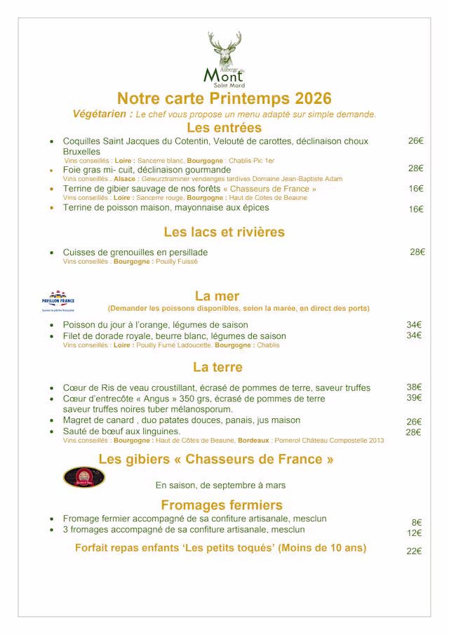 Menu mont saint mard en 5 services€45 per guest