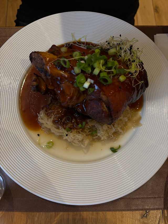 - Joues de porc confites, sauce au pinot noir d’alsace et pommes grenailles rôties