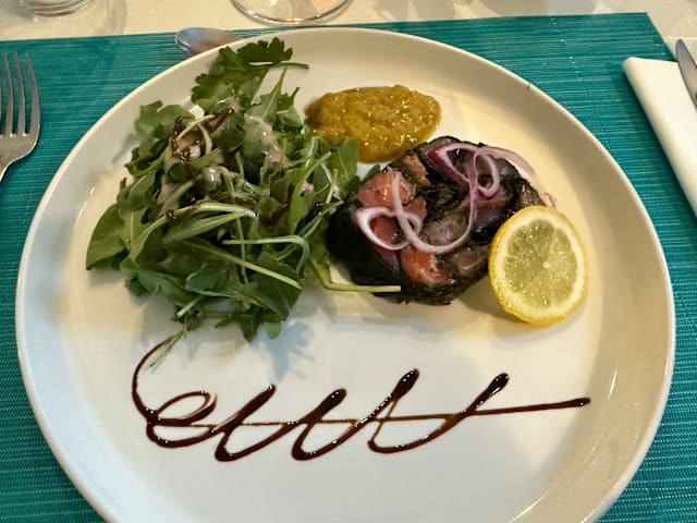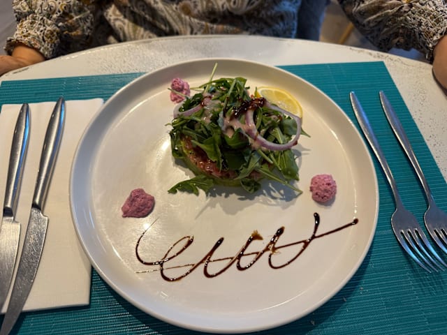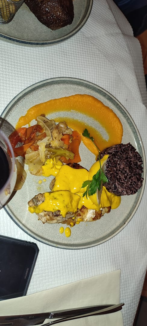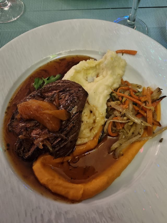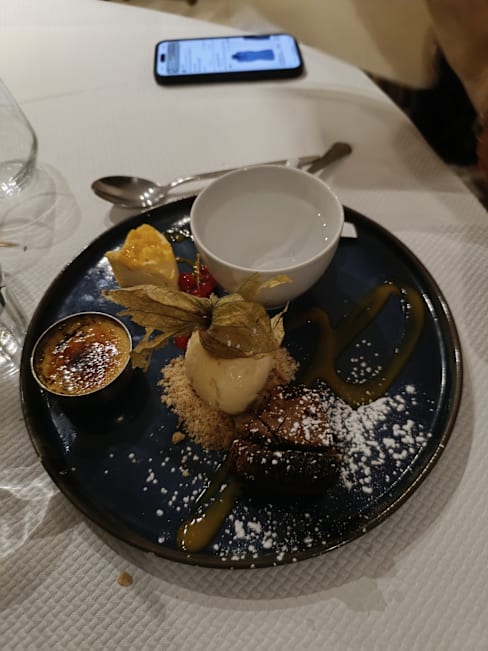 6/10Disappointing arrival, frontage was shabby and untidy. Welcome was OK but service was below expectations, very slow. Ambiance was missing, even our view out of the window was of ladders and scaffolding storage. Our starters were adequate. My wife's steak was good but my cote de boeuf was very fatty, sinewy and chewy. I do like blue beef but this was an error of mine, the cut was not suited to blue preparation. The vegetables were al dente and very good, however the serving was very small. The potatoes were very good. The selection of deserts scored 6 out of 10, not great. The restaurant was busy, a table of 7 ladies were next to us and added much to the slowness of service. The price paid was fair but, as the recommendation came from a Michelin Web site, it was priced as I expected but the quality was well below my expectations. Competition is tough so standards here must improve. I will eat there again, but I hope the service, ambience and food quality are much better. Overall 5/10 disappointing.