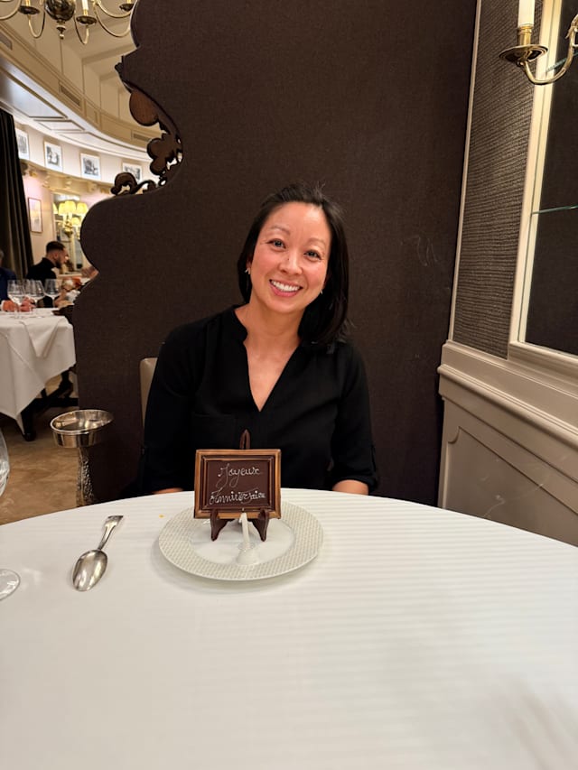 10/10Our birthday dinner at the Auberge was unforgettable ! Every member of the staff was eager to make our experience special. They were welcoming, attentive, and eager to share their knowledge and expertise about the food, wine and place. We particularly enjoyed the birthday celebration which included a delicious chocolate gift, and, the absolutely impressive variety of desserts !