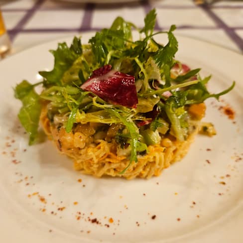 7/10While we went and the shop was half empty, They wanted to place us at a table next to the door which was cold, With great persistence on our part, we managed to get us into the main hall We bought a €50 wine and it was served to us in a small glass, while around us everyone was drinking their wines in big beautiful crystal glasses Is it because the booking was made through the app that they considered us as second customers? The food was wonderful very tasty the atmosphere special