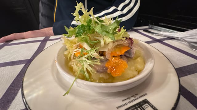 9.5/10We had a wonderful dinner. We ordered a menu and all dishes were very good and the wine selection did not disappoint. Great service, professional and knowledgeable. Authentic French cooking at its best. Would go back when next in Paris. Everything was delicious but the soufflé we got for dessert in a little copper pot was simply excellent.