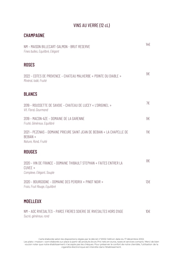 FrenchEuropeanCevicheSaladTruffleBrunchOutdoor diningLocally producedVegan dishesVegetarian dishesAmerican ExpressCellarWheelchair AccessibleWifi