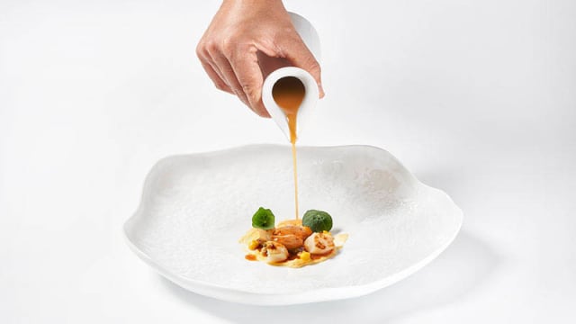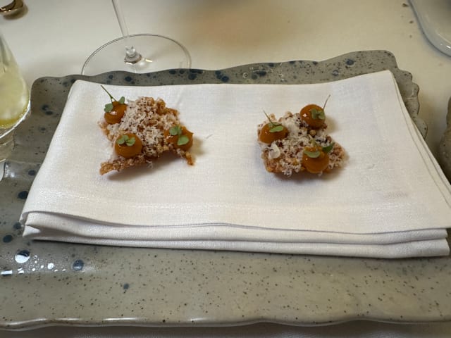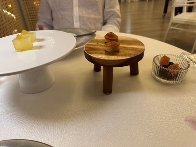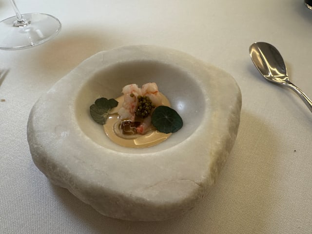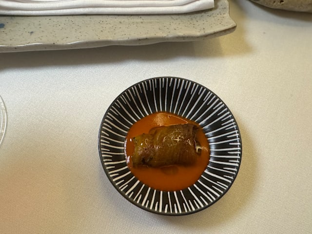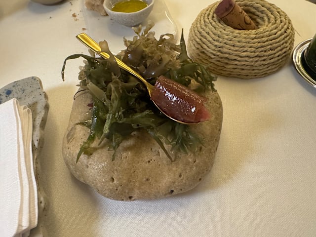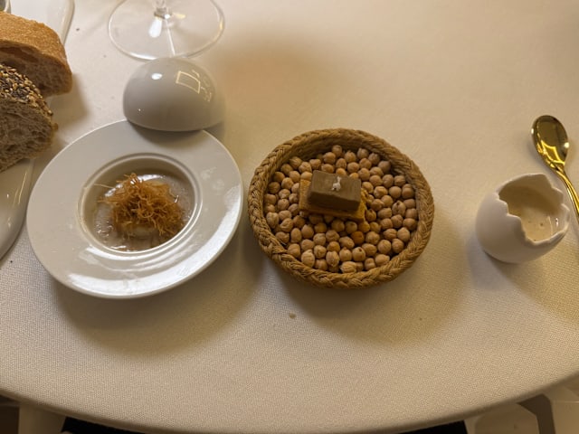 3/10Dinner at the eerily empty restaurant was a saga of regret. Its unsettling atmosphere was a precursor to a disastrous meal. We suffered through 17 dishes, 15 of which were disconcertingly gelatinous, chillingly cold, and excessively acidic. The worst offender was the Entomacat, a monstrous medley of preserved tomatoes. With a ghastly texture reminiscent of snot and a misplaced briny fish flavor, it was culinary torture, a nightmarish dish that could be straight out of a gastronomic hell. My date, usually a food enthusiast, was equally appalled. She oscillated between disbelief and annoyance, at one point suggesting we leave early. We were on the verge of crowning this as the worst dinner of our lives when the Herberet dessert appeared. The harmony of rich chocolate and zesty citrus fruits offered a glimmer of redemption. The chef’s family bread recipe also offered a modicum of comfort, though it's hardly the reason one visits a Michelin star restaurant. Despite the saving grace of the dessert, the memory of the abhorrent Entomacat and the chillingly acidic dishes lingers. This was a meal that veered dangerously close to being the worst of my life.