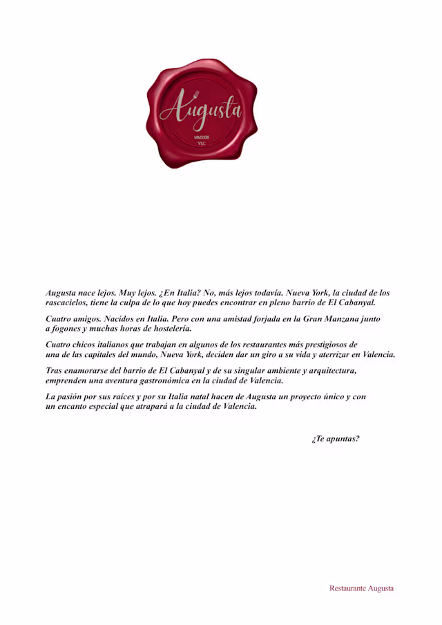 Great ambiance and great Italian food at Augusta. Will go there again next time I visit Valencia.