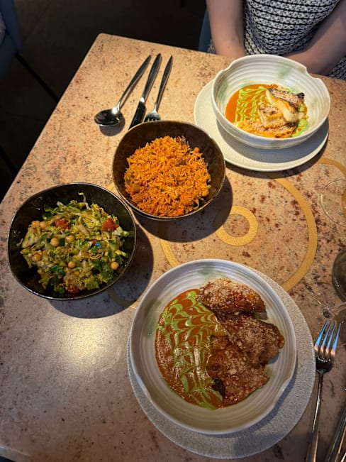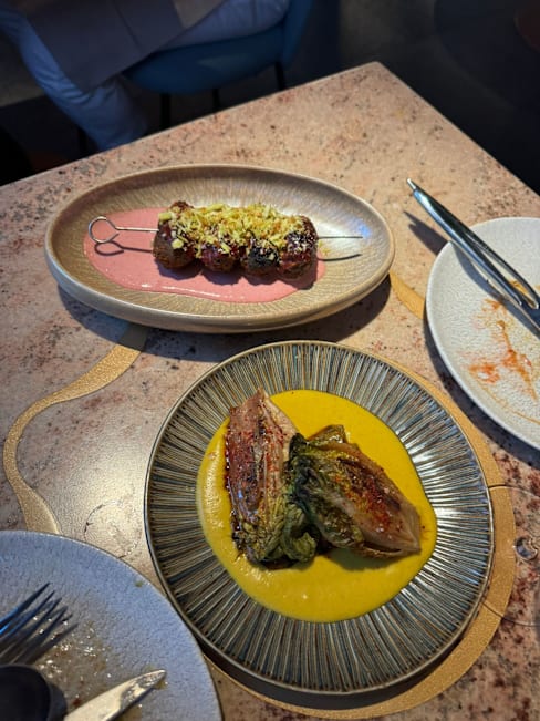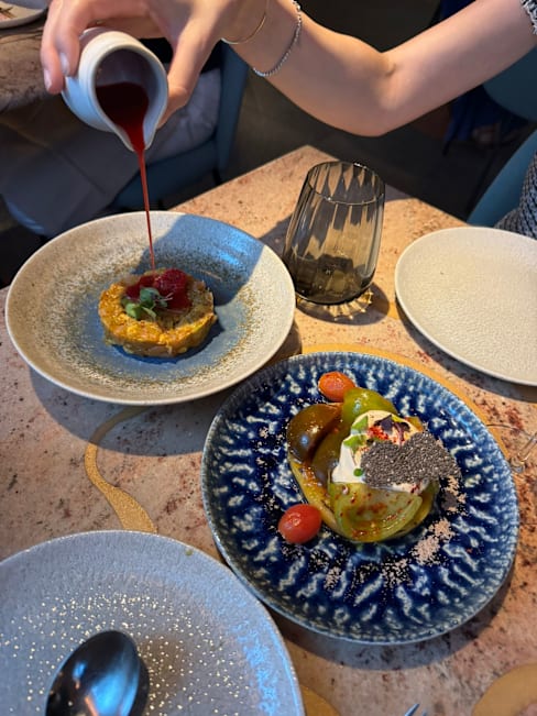 8.5/10Food is delicious. Friendly waiters, music quite loud, the beat is not for everyone while eating. A bit of waiting time, arrived 7:30, ordered 7:45 - 8:25 starter arrived. 21:06 first main courses. Flush in one of the toilets didn’t work. Pretty, trendy place, good subdued light.