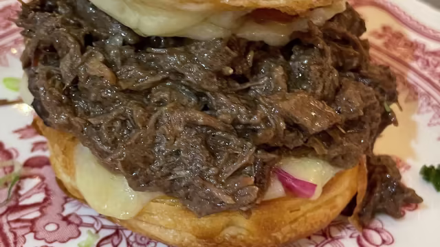 - Effiloché de bœuf bourguignon mijoté 9h, comté AOP, mayo maison, sauce bourguignonne