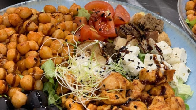 Greek bowl, com feta e hummus