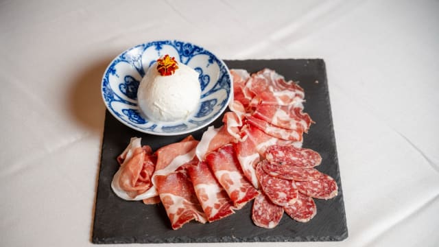 Coppa di parma, salame felino al coltello, crudo di parma accompagnati da mozzarella fiordilatte