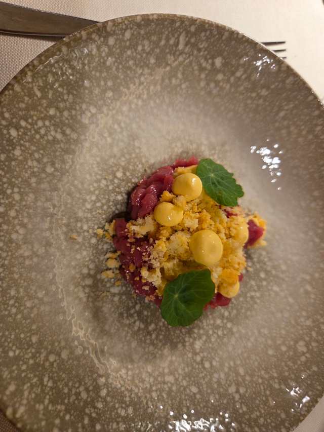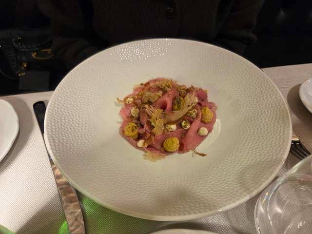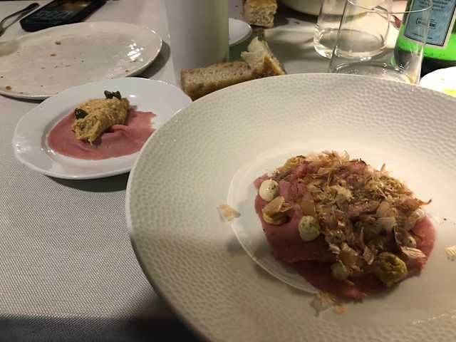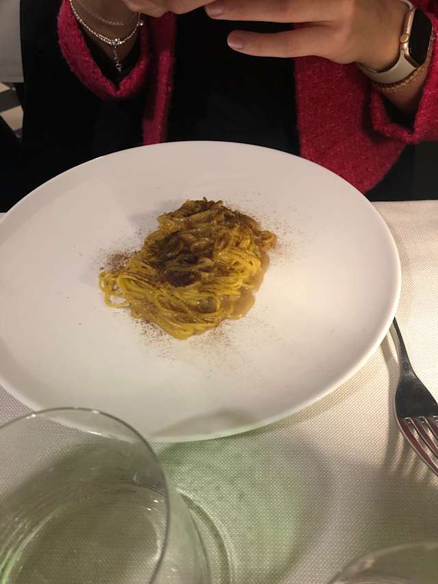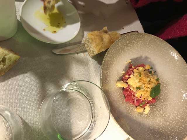 10/10We eat inside this lovely restaurant with its vaulted ceilings and impressive wine racks. The food is very original (several options on the menu require you to eat with your fingers, even some tradition Plin pasta!) and full of interesting flavours. It was no trouble for us to have 2 x starters each rather than selecting a main course. Staff were very helpful and spent time describing each course in detail. Very reasonably priced given the very high quality of the dishes we experienced. We have already booked to return later during our Piedmont trip