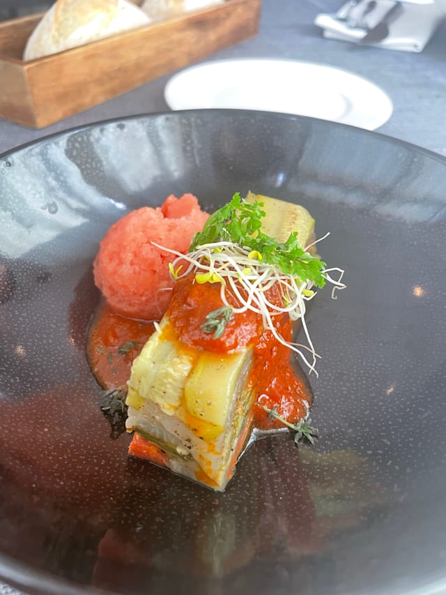 10/10Cozy place. Very nice covered terrace, with trees around, Relaxed atmosphere. Passionate and knowledgeable sommelier. Three different menus. All that is needed to enjoy the evening!