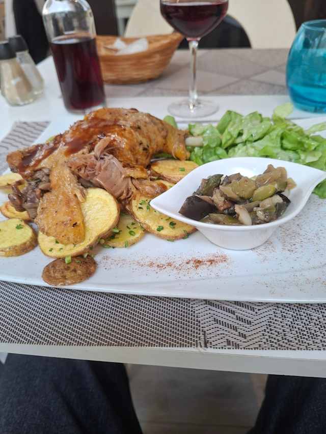 - Salade verte,gésiers de volaille confit,magret de canard séché,tomates,pignons de pin, foie gras poêlé sur toast