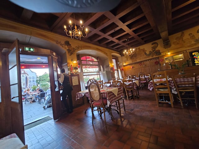 6.5/10Above average for a tourist trap, below compared to a decent French restaurant. Awful wine by the glass, solid Elsace dishes. Great location.