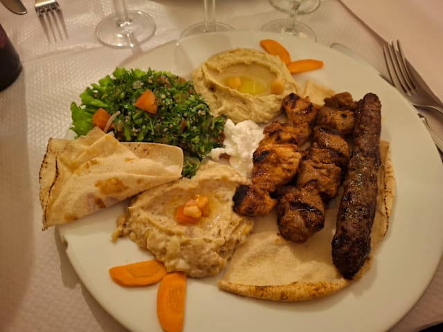 6/10Acceptable, basic Lebanese food. Enough but not generous as is usual with other Lebanese restaurants. Also rather overpriced. Pleasant but slightly frenetic service. A very friendly octogenarian who enjoyed a chat in English. We were disturbed by the presence of a little girl and a dog. However, it's worth a try - you may like it.