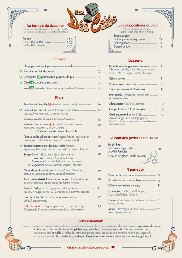 Greetings! Thank you for your wonderful feedback! We're so glad you enjoyed your meal and found the atmosphere lively and welcoming at Aux Dés Calés 17. Our team looks forward to welcoming you back for another lovely dining experience. The team of Aux Dés Calés