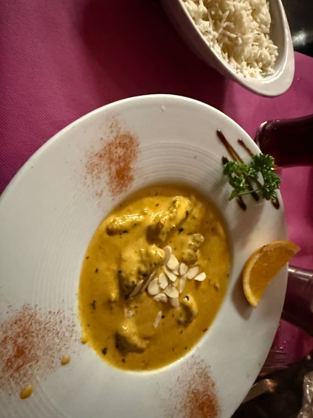 6/10My third time in this restaurant. Summary : good food but terrible service. For the food, I recommend the tikka massala on a hot plate which is particularly nice. The waiter usually offers extra rice if needed ; I hadn't the need for it as I had enough. Besides, we were offered a champagne glass as a digestive. I didn't take it as I wasn't drinking alcohol that evening ; I wasn't offered an alcohol-free drink instead. Weird... The service... After we were seated, the waitress forgot us for a looong while ! We had some crips and sauces but weren't asked for an aperitive drink. Indeed we weren't given the drinks card. People coming in after us were served first. Weird again. Also, I had booked the dinner with a comment asking for a table near the cook. I enjoy watching the meals being prepared. This wasn't taken into account : the booking has been totally ignored. When I mention this to the waitress she told me we should have arrived earlier. Er... remind me the purpose of a booking ? Weird again again. There was plenty of spare tables in the restaurant, so the table should have been booked. Quite disappointing. The booking is only checked for the bill as it gives you a discount.