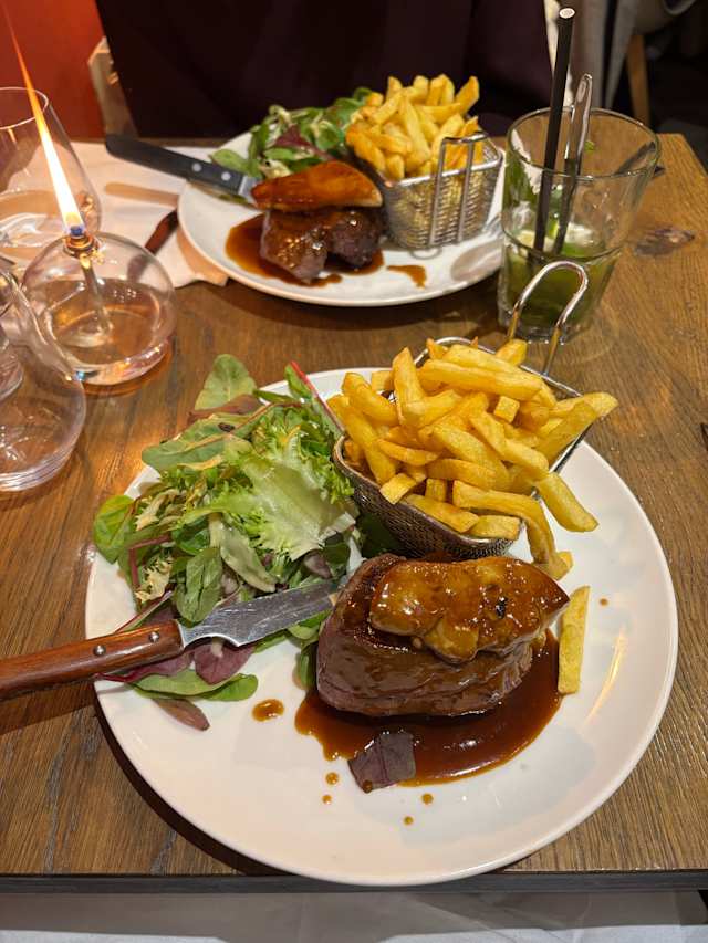 - Pavé de bœuf rossini frites à la graisse de bœuf et mesclun