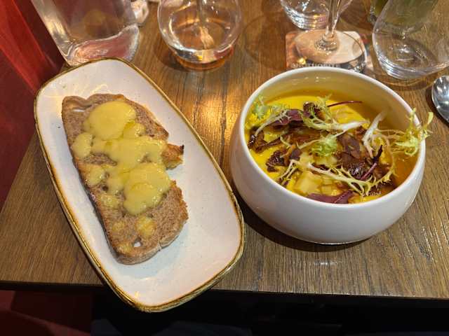 - Velouté de butternut comté et pancetta